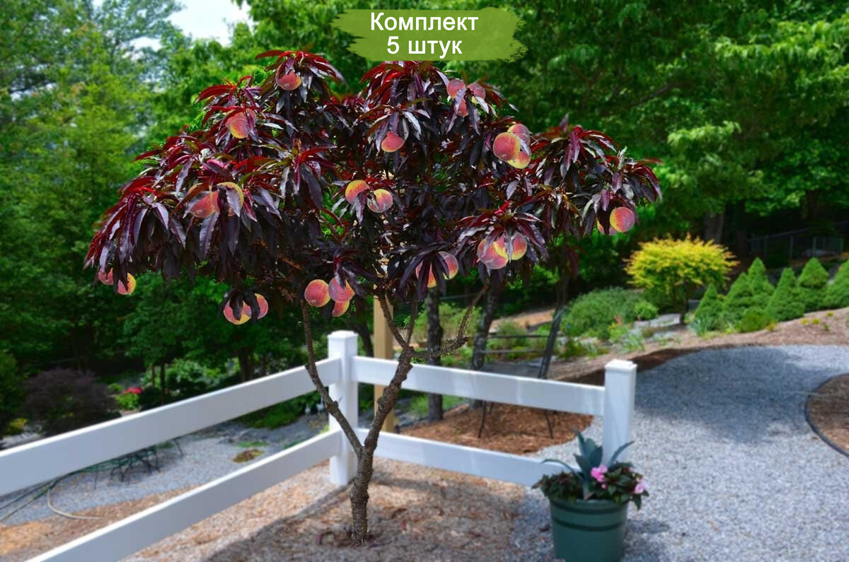 Саженцы персика краснолистного сорта Бургунди - 5 штук. Выгодное предложение! Комплект из 5 саженцев по цене 4.