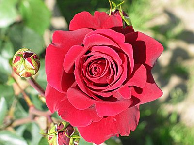 Саженец чайно-гибридной розы Бранденбург (Brandenburg) отличается крупными, густомахровыми цветками ярко-красного цвета, диаметром до 11 см. Цветки имеют благородную форму и могут располагаться как одиночно, так и в соцветиях, издавая легкий аромат. Листва растения темно-зеленая и сильно глянцевая, что придает кусту особую декоративность. Куст прямостоячий и хорошо разветвленный.